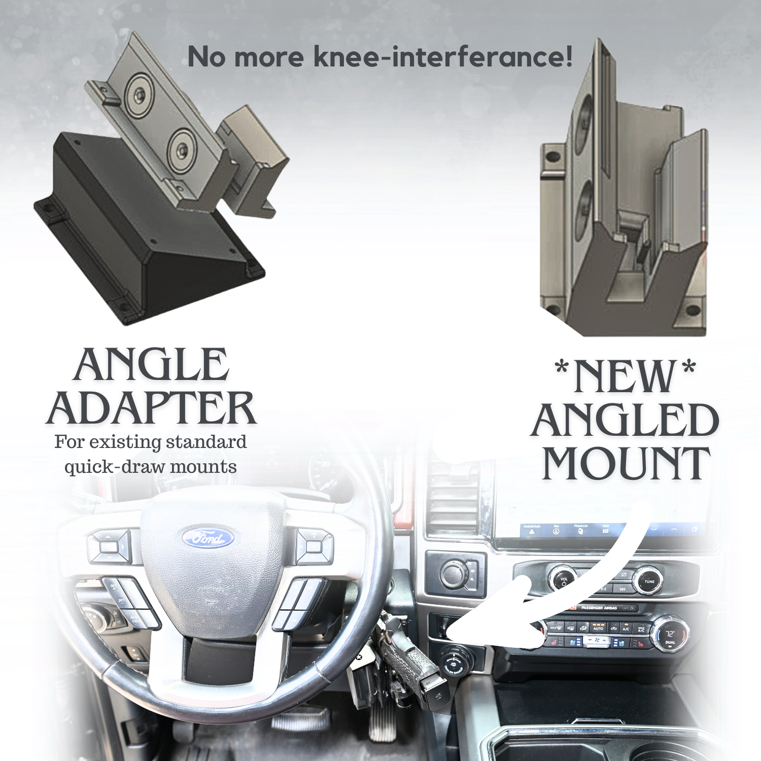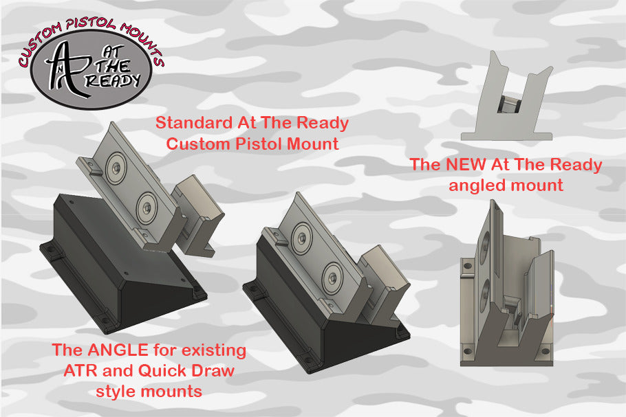 We’re thrilled to introduce the angled mount adapter, designed specifically for existing At The Ready customers and any quick draw mount style owners. This adapter allows you to angle your pistol mount away from your knee, eliminating interference with the pistol grip and improving overall comfort and accessibility. It’s also compatible with existing mounts on the market.
